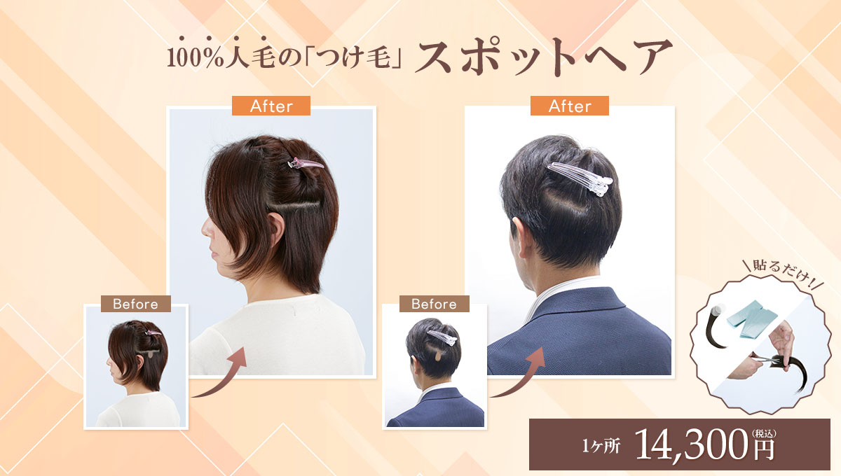 円形脱毛症が進行し部分ウィッグを購入しました。着けてみると、違和感がなく見た目も自然。娘の運動会にもきちんとした姿で参加でき、家族写真も堂々と撮れ、以前より自信を持てるようになりました。